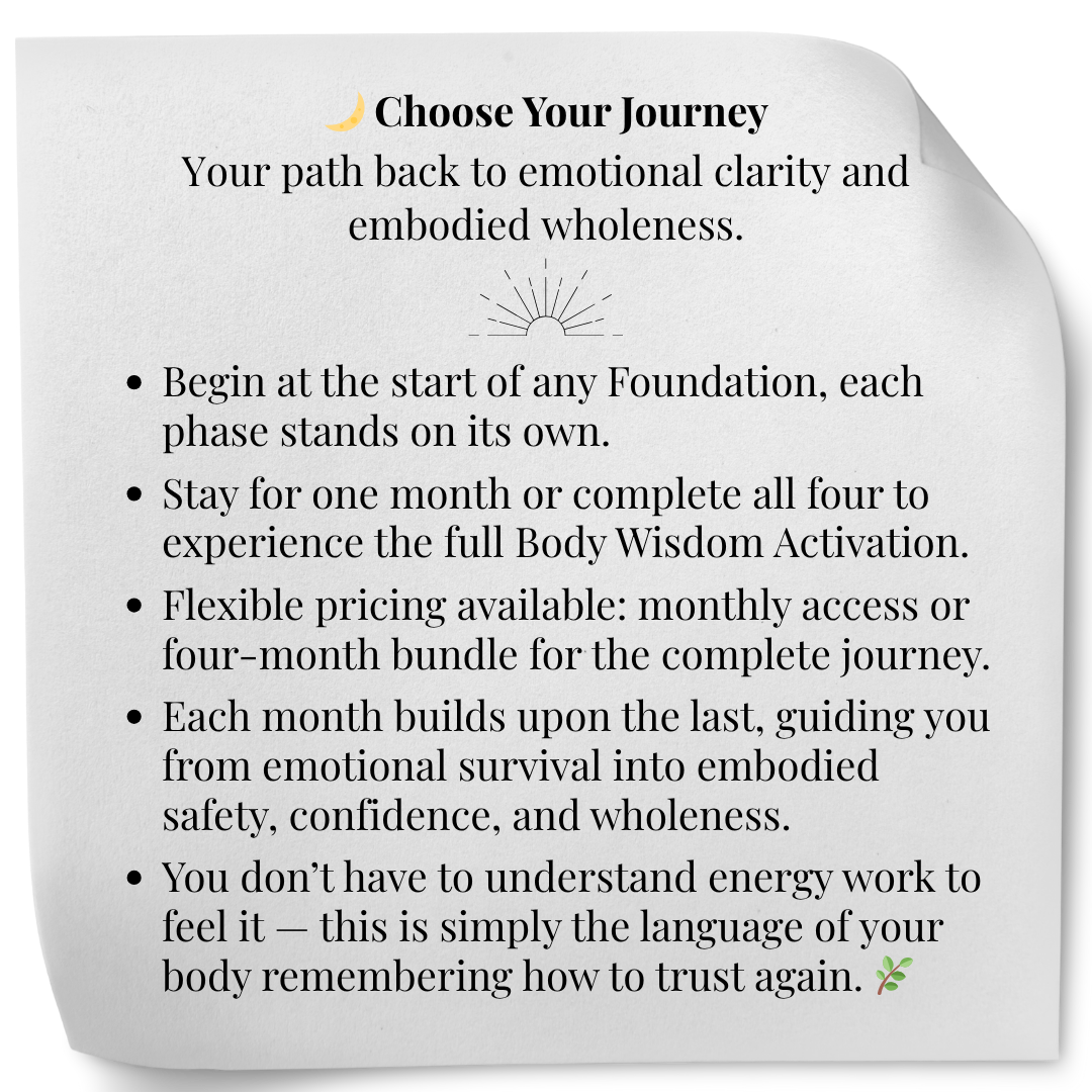 ✨ This isn’t surface-level mindset work; it’s inner recalibration. A structured, compassionate process that restores harmony between your mind, body, and soul, so you can finally hear and trust your own inner wisdom.